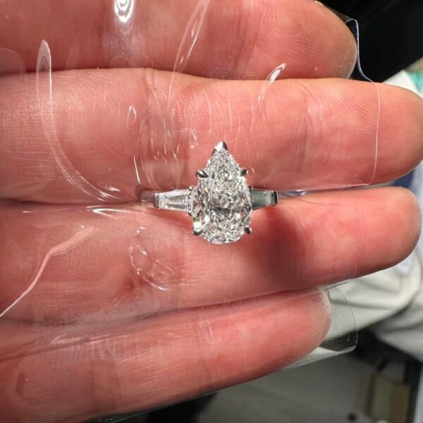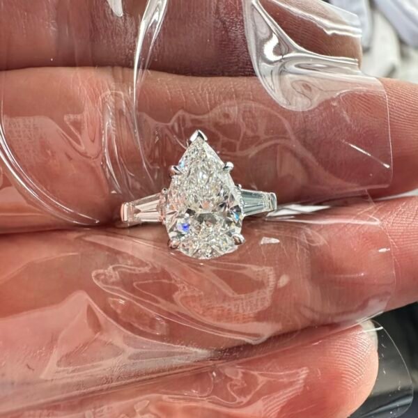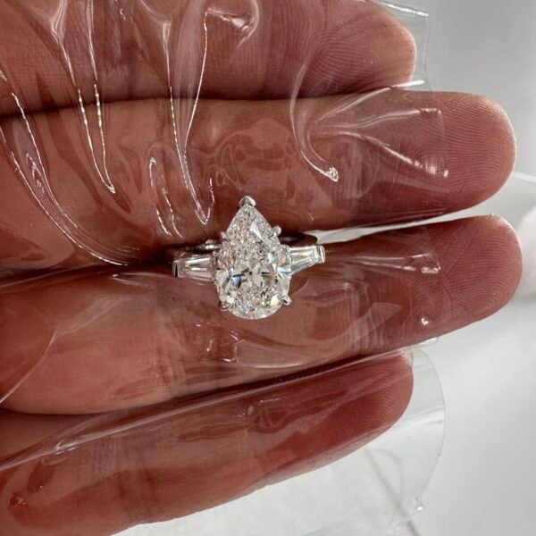 3 Carat Pear Cut Lab Diamond Ring-In 18K White Gold