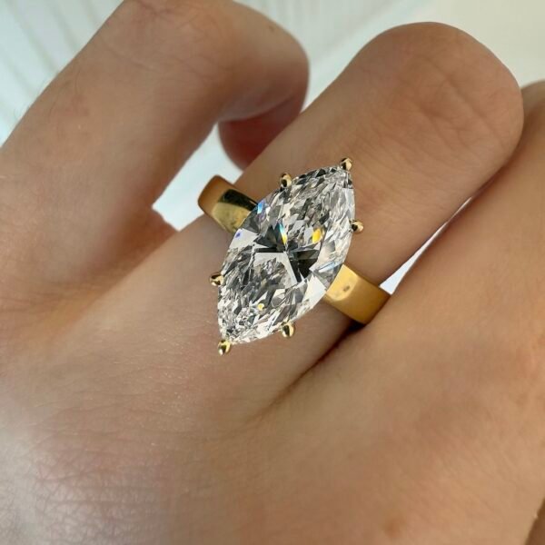 5 Carat Marquise-Cut Lab Diamond Ring-In 18K Yellow Gold