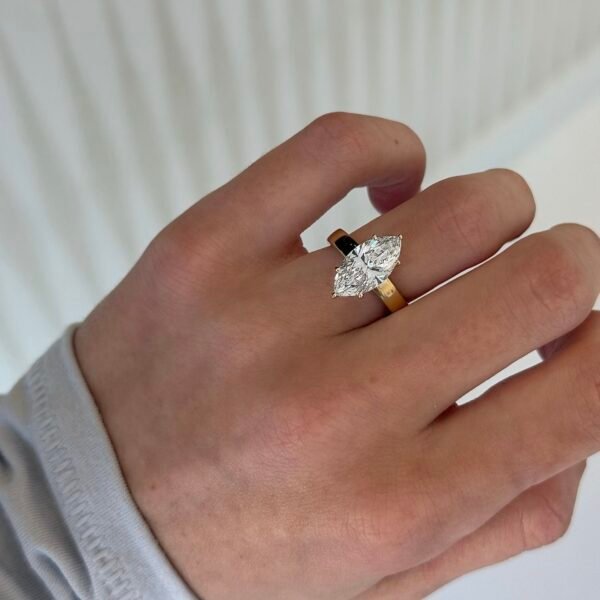 3 Carat Marquise Cut Lab Diamond Ring- In18K Yellow Gold