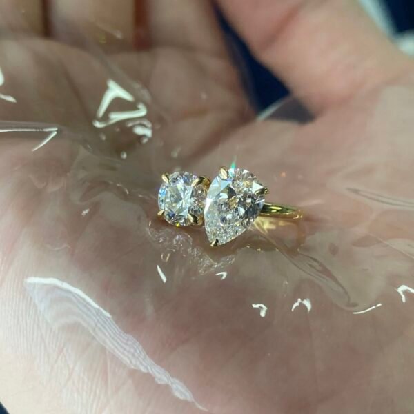 Round Brilliant Cut And Pear Cut Lab Diamond Ring-In 18K Yellow Gold
